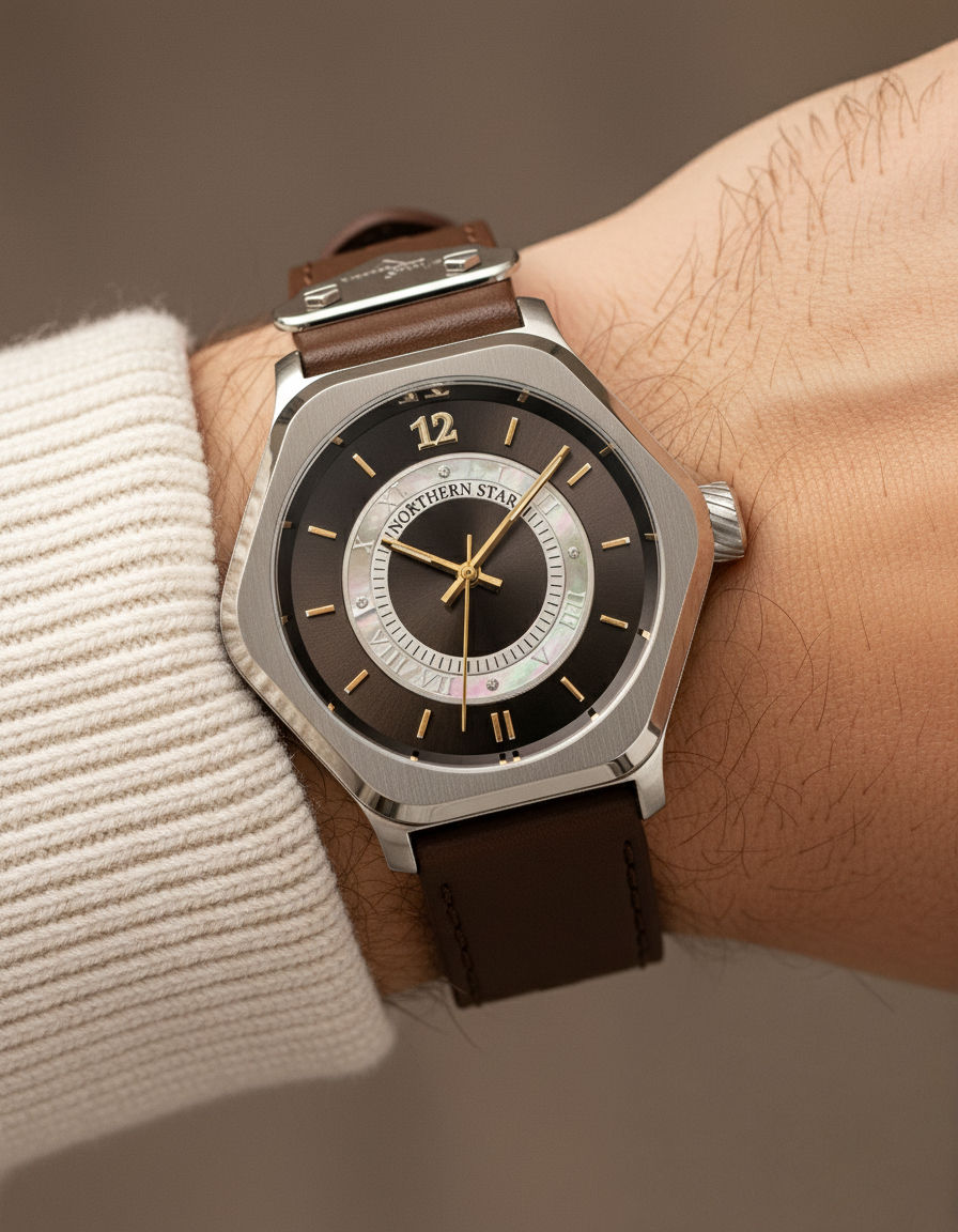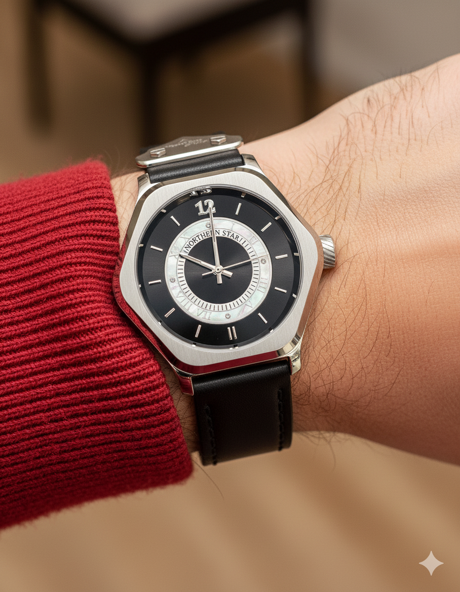 Waterproof up to 5 atm, the watch is suitable for various activities, from outdoor adventures to poolside relaxation."The Sentinel" is more than a watch; it's a statement of timeless elegance and impeccable taste, destined to be an inseparable part of your journey through time.